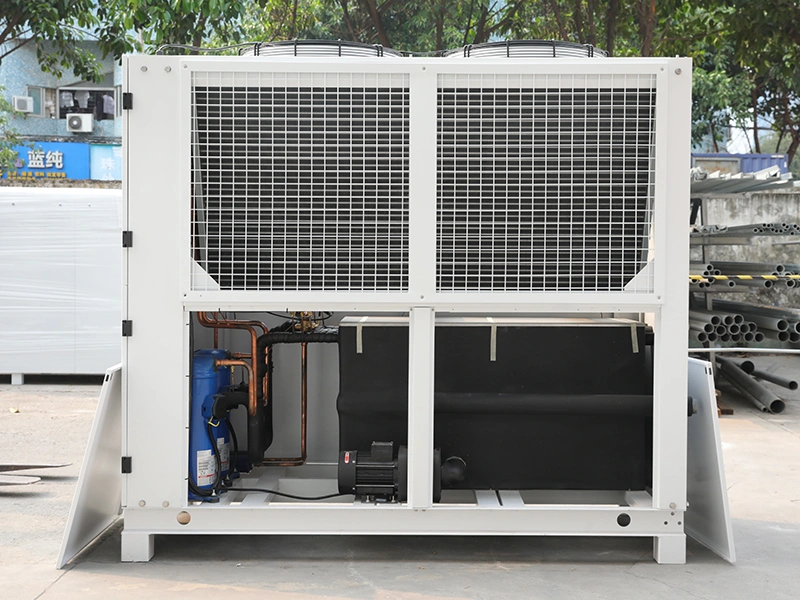 Los chillers enfriados por aire se adaptan bien a una amplia gama de condiciones de funcionamiento. Son más fáciles de instalar, requieren menos mantenimiento y pueden utilizarse en diversas aplicaciones. Sin embargo, para la misma capacidad de refrigeración, el coste del material suele ser mayor que el de los modelos enfriados por agua.