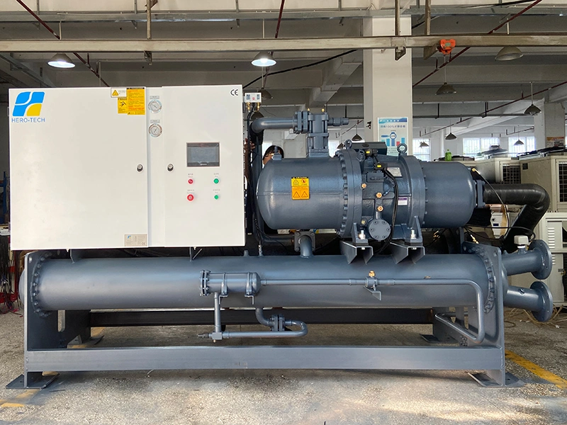 - Los chiller enfriados por agua tipo tornillo mantienen la temperatura estable en cámaras frigoríficas y armarios refrigerados para preservar la frescura de alimentos y productos farmacéuticos.
