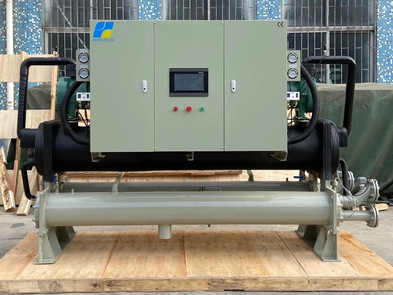 - Los chiller enfriados por agua tipo tornillo mantienen la temperatura estable en cámaras frigoríficas y armarios refrigerados para preservar la frescura de alimentos y productos farmacéuticos.